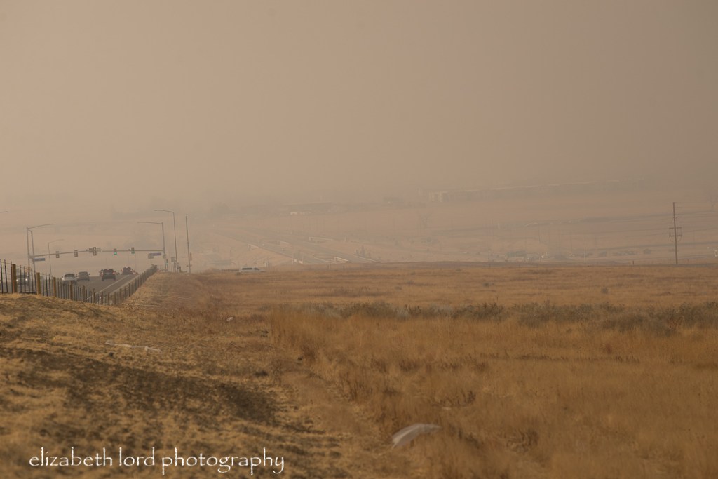 My intention for the day was to skirt the front range foothills and capture the blowing grasses. On the way, I passed the barn road and stopped in to visit Luna. By then, ash was filling the air and the smoke had begun to obscure visibility.
