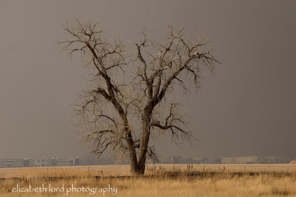 Hurricane force winds roared down the foothills and onto the plains. I was exhausted from Christmas responsibilities and needed a nature reboot. I grabbed my camera and headed out to photograph the wind. Immediately, I smelled smoke.