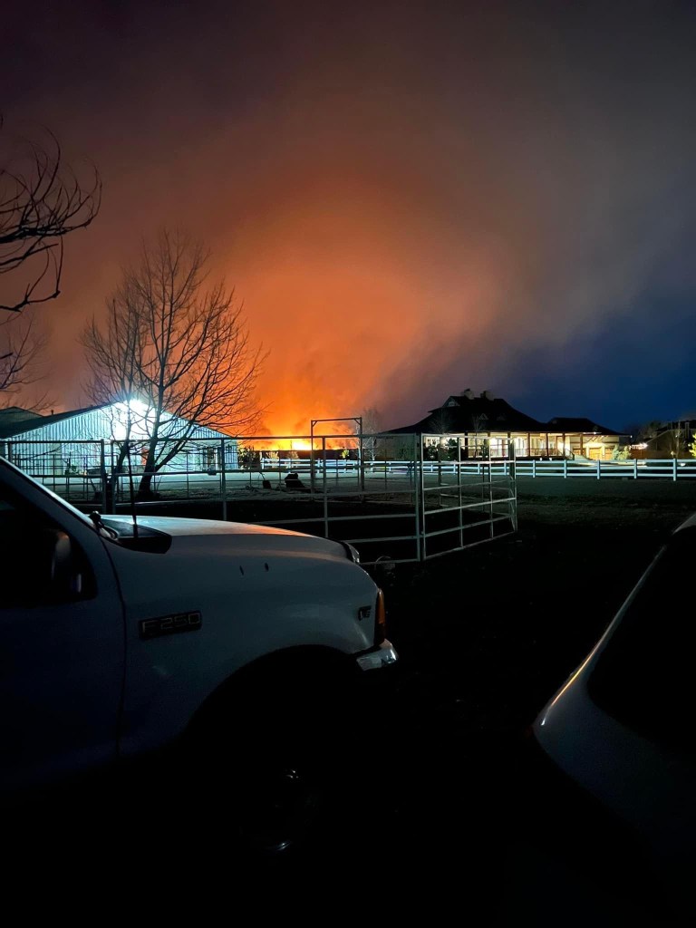 Over the next few hours, the evacuation was complete. By 11:30 that night, the barn owners packed up their clothes, their 3 dogs and fled. In the middle of the night, the wind changed direction, blowing the fire away from the surrounding pastures and our barn.