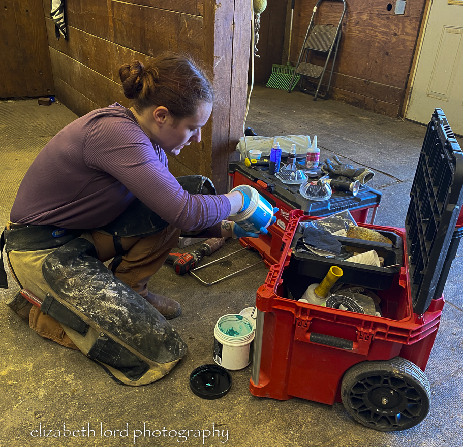 Ellen is meticulous in her trimming and care. I have included shots of her equipment. Each item has a specific purpose toward attaining her goal for each individual hoof. With each trim, she takes detailed photos to measure the progress.