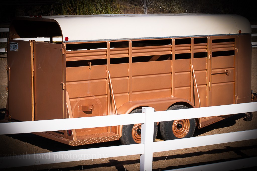 So, she purchased a stock trailer for the donks. The trailer was painted gold, probably to hide the rust! Everyone with hooves must be able to load quickly. Carol and I wanted to be sure the boys would load into the new gold box easily.