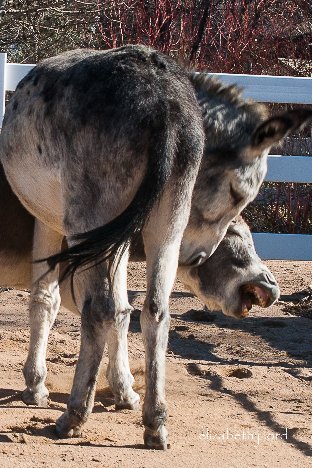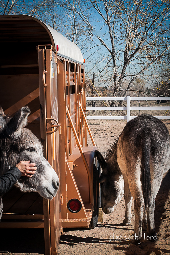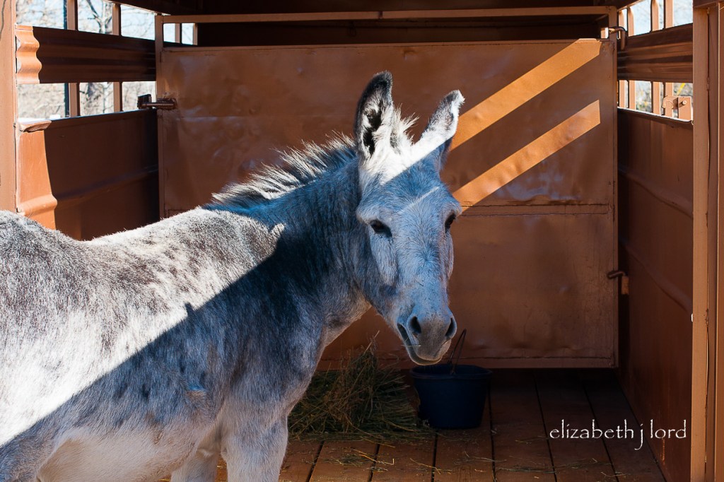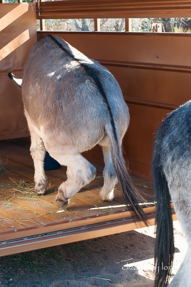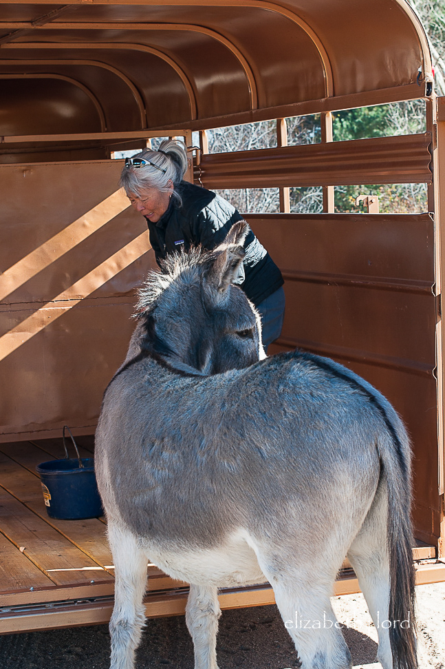 Anyone who has been around donkeys knows they don’t respond to force. We knew enough to not even try. Only patience, kindness and food will entice them to voluntarily enter a scary space.