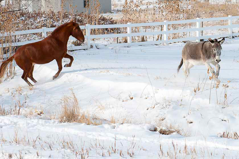 The donks are no different. After a snowy night spent in a warm barn, when Carol opens the doors after breakfast-out they go!