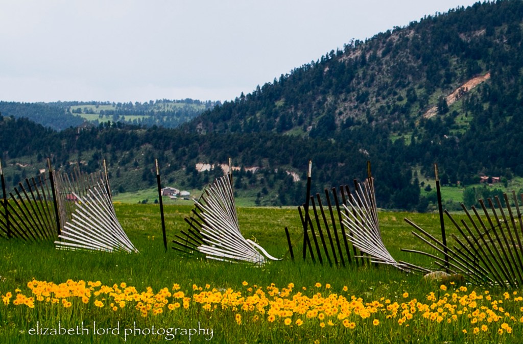 Patterns always catch my eye. When I happened upon these snow fences, what I saw were sails. Little ships blowing across the front range, accompanied by the froth of golden flower waves.