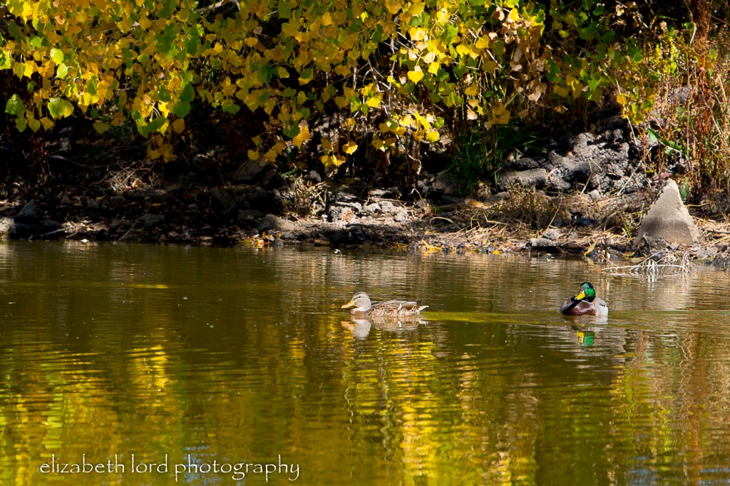 A mallard couple on Golden Pond. The autumn light illuminating the cottonwood leaves is magic. What touches you about this image?