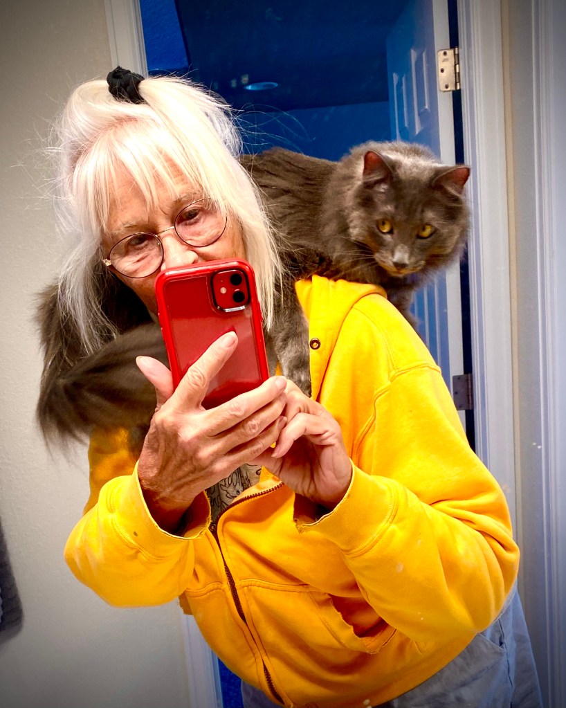 My cat Billy has always been demonstrably affectionate. Every night he joins me in the bathroom as I prepare for sleep. He often jumps from the counter to my shoulder and watches to see what I’ll do next. His eyes have me grabbing my phone for a mirror-selfie.
