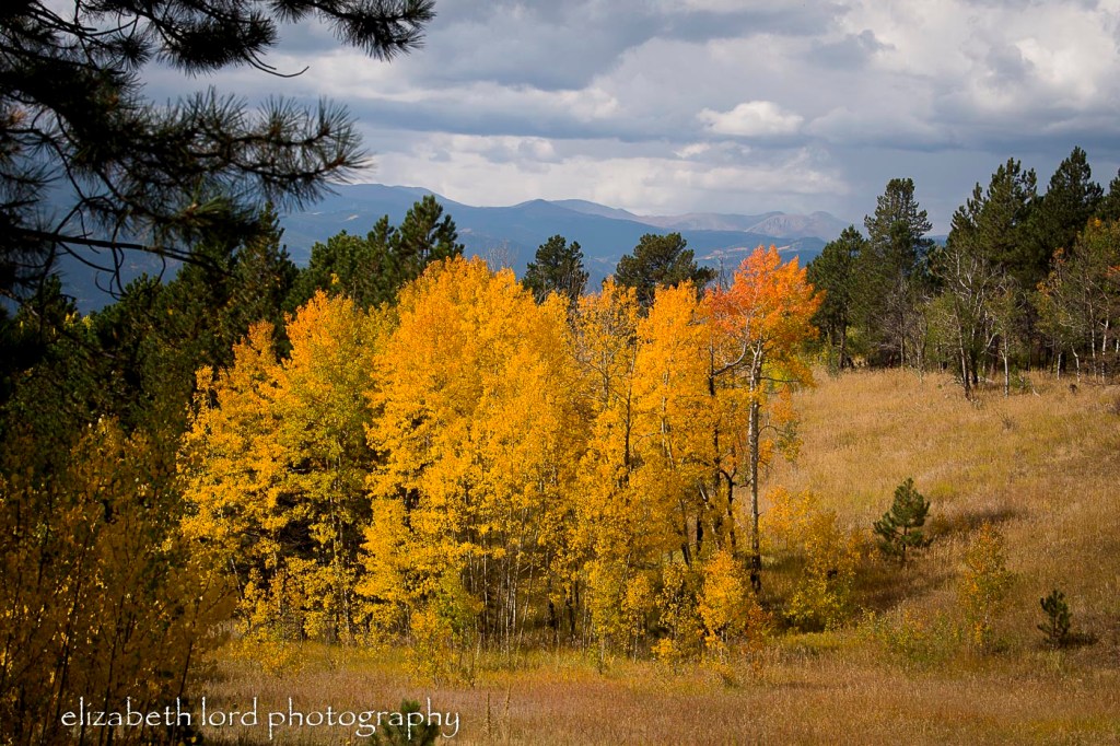 An autumn classic in Colorado. As a storm blows in from the peaks, the overcast light enhances the gold and orange of the aspen leaves.