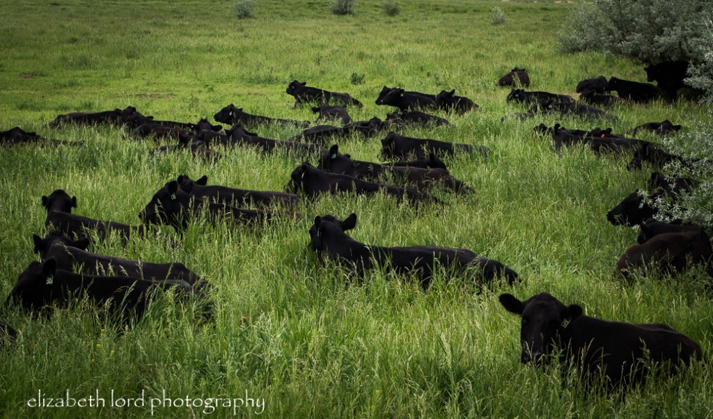 In the early morning light after a night of blessed rain, these girls settled in for a nap and some cud-chewing. One took a moment to look my way.