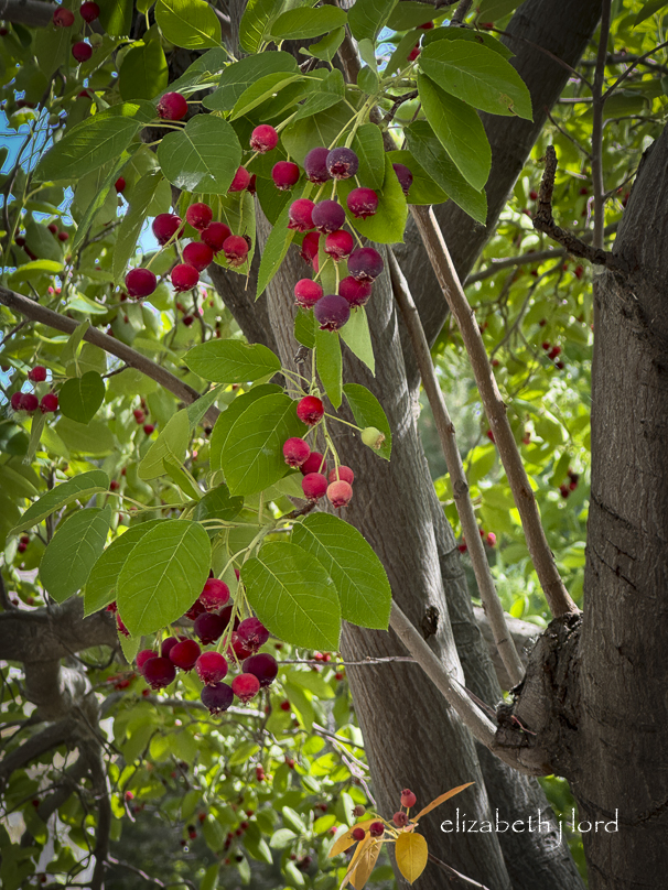 These berries grow on the tree outside my living room window. In the autumn, when the moment is right, they display these brilliant ripe berries, announcing to the birds, “Dinnertime!”
